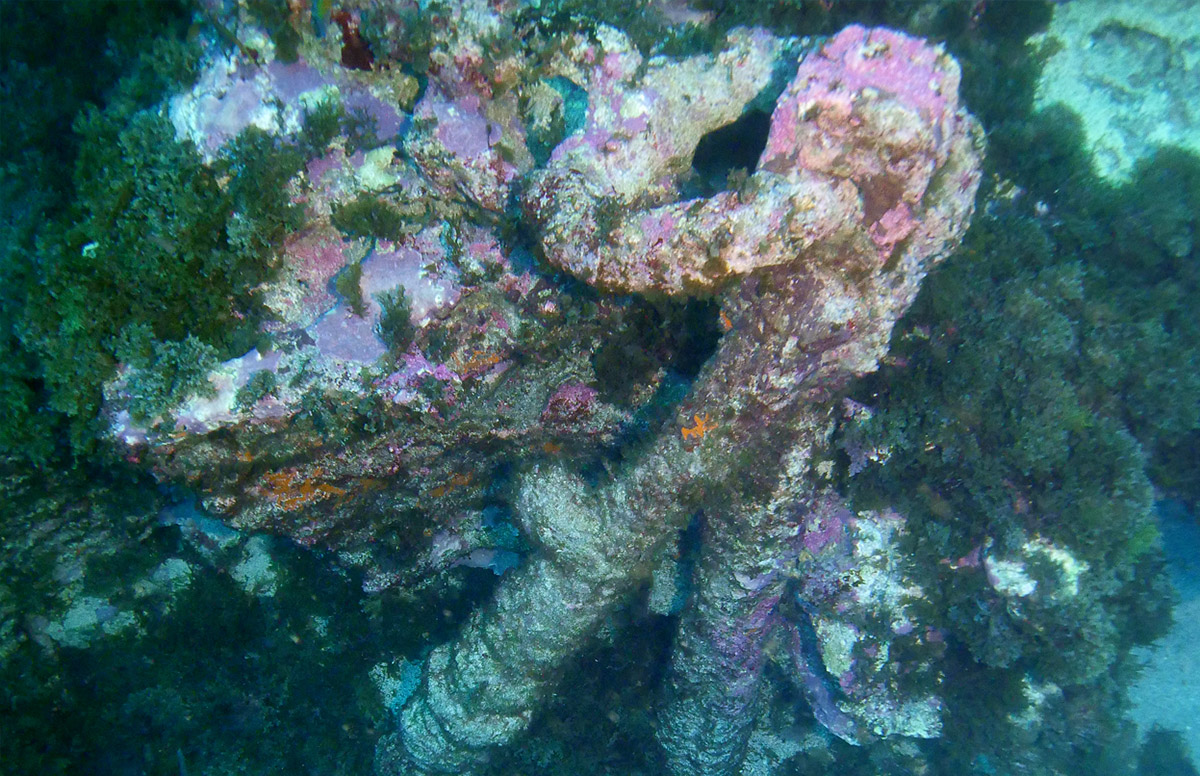 O cemitério de âncoras localiza-se nas coordenadas 39º02’55.17’’ Norte e 27º57’41.13’’ Oeste, entre os 21 e os 24 metros de profundidade.
