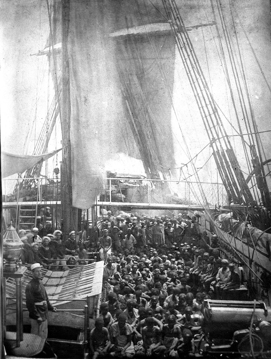 03. Escravos resgatados da África oriental a bordo do HMS Daphne, um navio naval britânico utilizado para impedir o transporte de pessoas escravizadas, 1868.