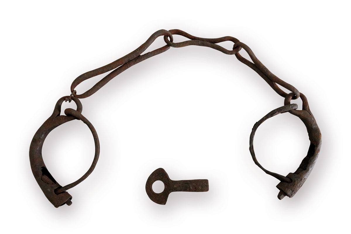 05. e 06. Algemas e chave e Grilhão fixo, em ferro, c. 1864.