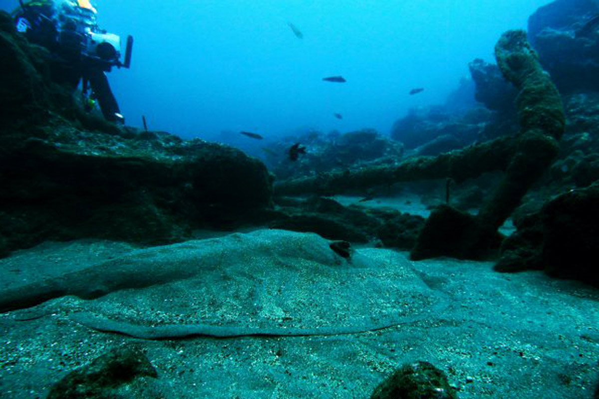 O sítio da “baixa das âncoras” localiza-se nas coordenadas 37º 42′ 24”N e 25º 26′ 12”O, entre os -19 e os -20 metros de profundidade.