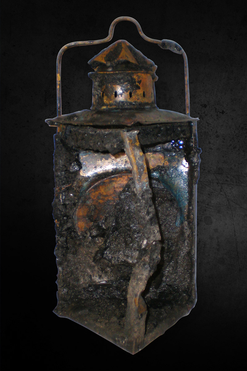 12. Oakfield. Lampião de iluminação recuperado a bordo.